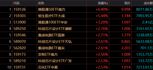 ETF午评:港股通50ETF领涨6.40%,科创创新药ETF领跌2.03%