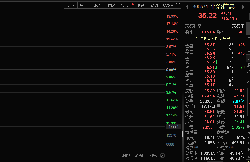CPO概念集体走强。个股方面,平治信息(300571)股价盘中一度实现涨停,截至发稿,股价涨幅超15%。