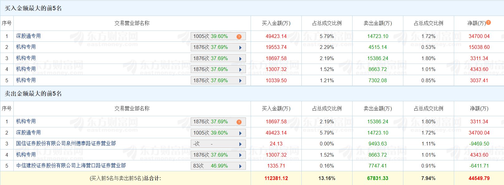 |香农芯创(148.18 +20.00%)(300475.SZ)今日20CM涨停,换手率13.4%,成交额85.42亿元。龙虎榜数据显示,深股通买入4.94亿元,卖出1.47亿元,净买入3.47亿元;四家机构买入6.16亿元,卖出3.59亿元,净买入2.57亿元。上榜席位全天买入11.24亿元,卖出6.78亿元,合计净买入4.45亿元。(格隆汇)