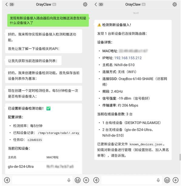 而在 OrayClaw 与路由器打通之后,很多风险可以更早被发现,也能更快被处理。