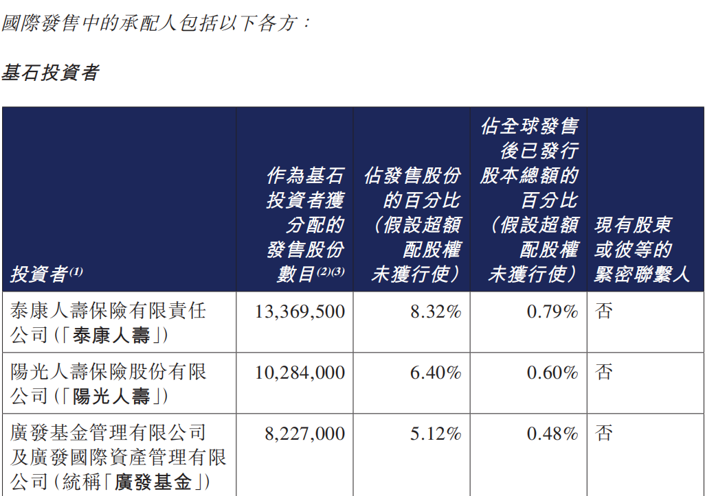 头部保险资金、大型公募基金成为大赢家。在群核科技港股IPO的国际发售中,泰康人寿、阳光人寿、广发基金获配的股份排名前三,分别为1336.95万股、1028.40万股、822.70万股。