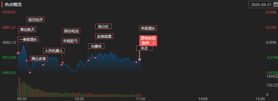 盘面上,电子化学品板块持续走强,华特气体20CM涨停,方邦股份、金宏气体涨超10%,海星股份涨停。煤炭板块震荡走高,甘肃能化涨超8%,晋控煤业、陕西煤业涨超4%。影视院线初盘走强,北京文化、文投控股涨停。算力方向持续走弱,实达集团跌停,康盛股份、佳力图跌超8%。液冷服务器板块走弱,英维克、圣阳股份跌停,锐捷股份跌超9%。